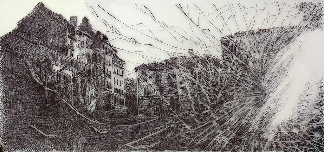 In her project for Bourbonne-les-Bains she traces the story of old houses, houses that need renovation or are crumbling totally, are left to the mercy of rain, wind and sun. As supports she uses local material, found in the near surroundings. With her drawings the memory will not fade entirely. Things change, for now it seems like a sad thing, people are leaving, but it is part of nature. There will be plant seeds in the ruins, interference through art creates a magical moment enabling the lifeless to become alive again. Tell the story of a place – however this story reveals itself.