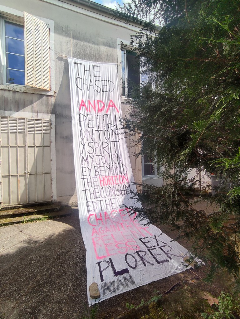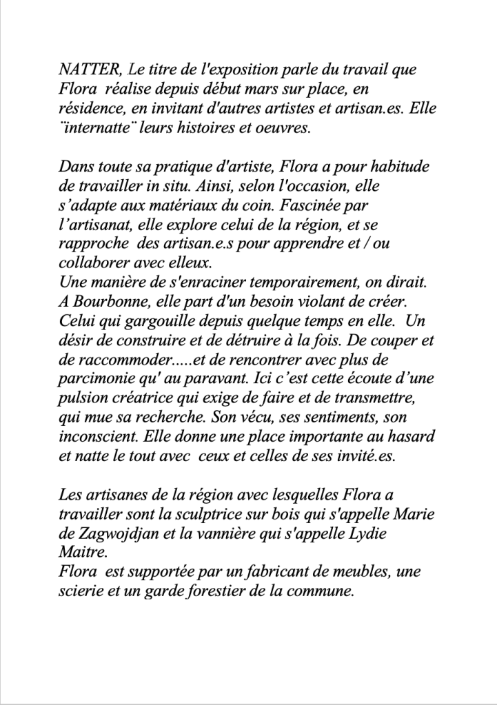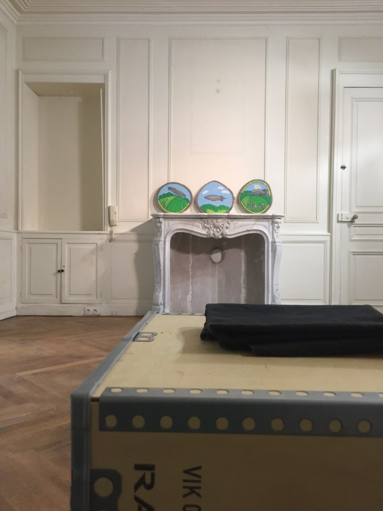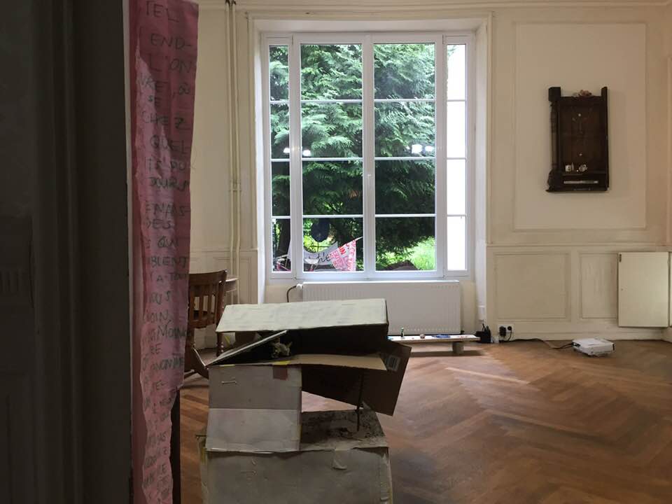 The first artist in residency was Samson Kambalu. His work for this duo show together with Gabrielle du Mêntelet-Laumont ( incognito) is based on what he filmed in Bourbonne and region during his short residency some months before. The title of this exhibition is ¨Premier Vol¨-¨Early Flight¨
