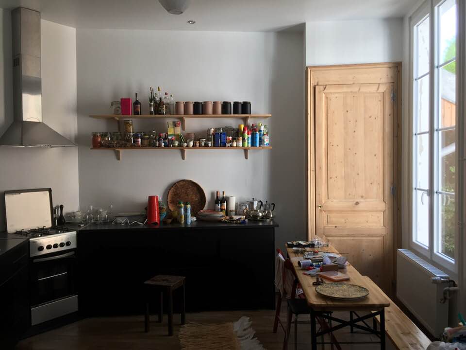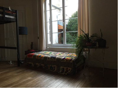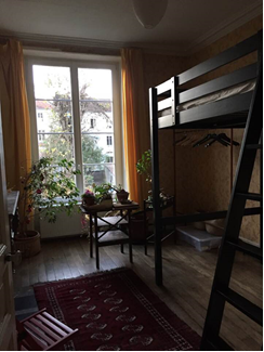 2 large bedrooms, each with a double loft bed, a desk, a clothes rail + storage boxes. (The first room measures about 25m2, the second about 20m2). Large, nice kitchen with washing machine and a very small toilet / shower room. The last 2 must be shared with the other residents.